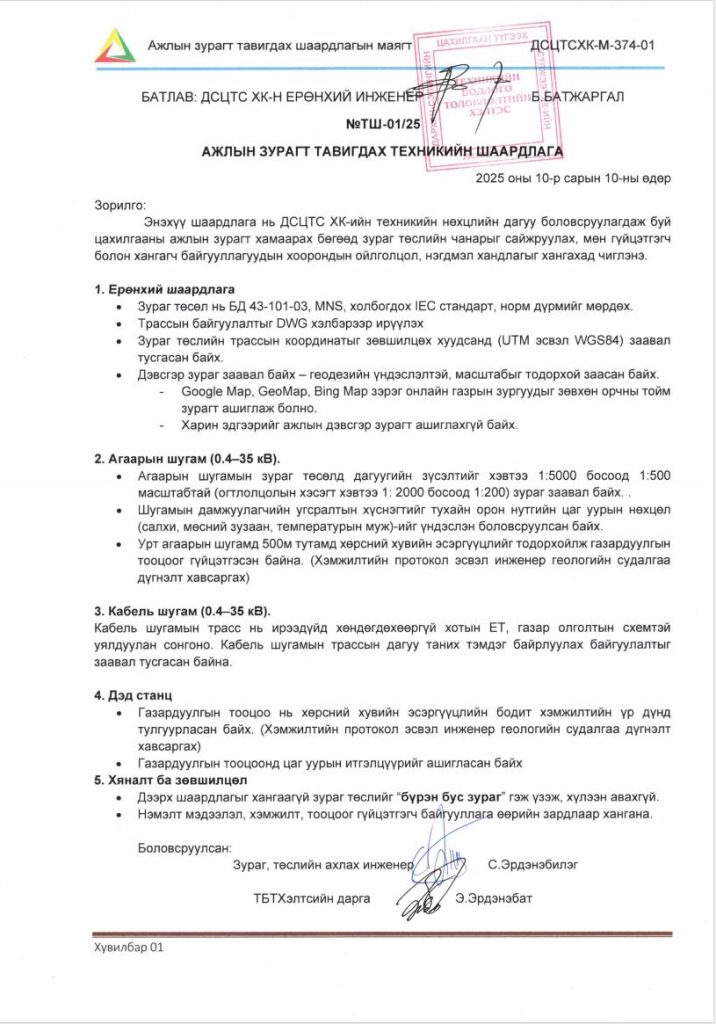 “ДСЦТС” ХК-ийн эзэмшлийн цахилгаан түгээх сүлжээнд цахилгаан тоног төхөөрөмж, цахилгаан дамжуулах агаарын шугам, барилга байгууламжийг шинээр холбуулахад заавал техникийн нөхцөл авсан байна.